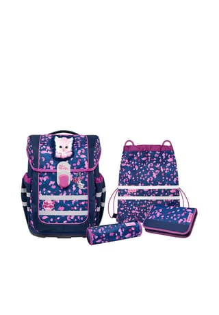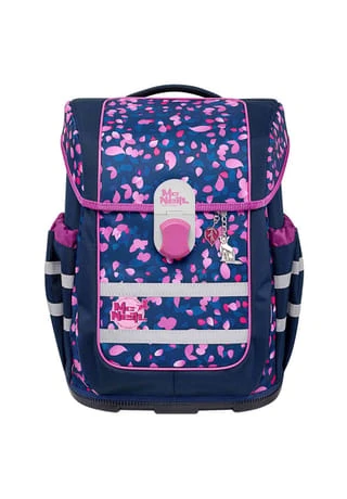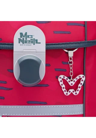 5-teiliges Schulranzen-Set der brandneuen Ergo Complete Serie von McNeill bestehend aus Schulranzen, Sportschuhbeutel, Federmäppchen gefüllt, Schlamperrolle und Motivmagnet. Der Schulranzen überzeugt durch hohe Verarbeitung und Funktionalität und verfügt über Motivmagneten, die an der Deckelkappe angebracht werden können und einen Grundmotiv komplettieren. Dadurch wird der Schulranzen ganz individuell gestaltet. Mit ergonomischem, höhenverstellbarem Tragesystem, vielzähligen Fächern und Taschen und viel Platz für Bücher, Hefte, Trinkflasche, Federmäppchen oder sonstige Mitbringsel für die Schule lässt der Schulranzen keine Wünsche offen. Die Reflektoren sorgen für Sichtbarkeit und Sicherheit auf dem Schulweg. Schulranzen Außenmaß: 29 cm x 22 cm x 38,5 cm / Gewicht: ca. 1150 g / Volumen: ca. 20 l