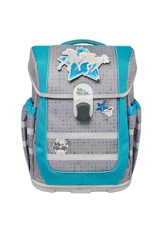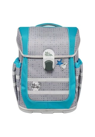 5-teiliges Schulranzen-Set der brandneuen Ergo Complete Serie von McNeill bestehend aus Schulranzen, Sportschuhbeutel, Federmäppchen gefüllt, Schlamperrolle und Motivmagnet. Der Schulranzen überzeugt durch hohe Verarbeitung und Funktionalität und verfügt über Motivmagneten, die an der Deckelkappe angebracht werden können und einen Grundmotiv komplettieren. Dadurch wird der Schulranzen ganz individuell gestaltet. Mit ergonomischem, höhenverstellbarem Tragesystem, vielzähligen Fächern und Taschen und viel Platz für Bücher, Hefte, Trinkflasche, Federmäppchen oder sonstige Mitbringsel für die Schule lässt der Schulranzen keine Wünsche offen. Die Reflektoren sorgen für Sichtbarkeit und Sicherheit auf dem Schulweg. Schulranzen Außenmaß: 29 cm x 22 cm x 38,5 cm / Gewicht: ca. 1150 g / Volumen: ca. 20 l