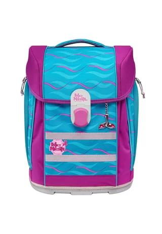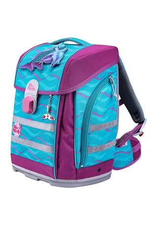 6-teiliges Schulranzen-Set von McNeill, bestehend aus Schulranzen, Sportschuhbeutel, Federmäppchen gefüllt, Schlamperrolle, Motivmagnet und an- und ausschaltbarem Leuchtanhänger. Top-Tragekomfort durch die atmungsaktive Rückenpolsterung, höhenverstellbare Gurte sowie Becken- und Brustgurt. Der Ranzen hat einen Schnappverschluss, der magnetisch angezogen wird und sehr leichtgängig wie von selbst schließt. Die Bodenplatte ist aus Plastik und bietet dadurch einen wasserfesten und sicheren Stand. Geräumige offene Seitentaschen können für die Trinkflasche oder sonstige Mitbringsel für die Schule verwendet werden. An- und ausschaltbarer Leuchtanhänger bietet eine sichere und optimale Lösung, wenn es um die Sichtbarkeit ihres Kindes geht. Schulranzen Außenmaß: 30 cm x 22 cm x 38 cm / Leergewicht: ca. 1.000 g / Volumen: ca. 20 l