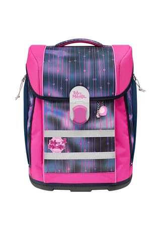 6-teiliges Schulranzen-Set von McNeill, bestehend aus Schulranzen, Sportschuhbeutel, Federmäppchen gefüllt, Schlamperrolle, Motivmagnet und an- und ausschaltbarem Leuchtanhänger. Top-Tragekomfort durch die atmungsaktive Rückenpolsterung, höhenverstellbare Gurte sowie Becken- und Brustgurt. Der Ranzen hat einen Schnappverschluss, der magnetisch angezogen wird und sehr leichtgängig wie von selbst schließt. Die Bodenplatte ist aus Plastik und bietet dadurch einen wasserfesten und sicheren Stand. Geräumige offene Seitentaschen können für die Trinkflasche oder sonstige Mitbringsel für die Schule verwendet werden. An- und ausschaltbarer Leuchtanhänger bietet eine sichere und optimale Lösung, wenn es um die Sichtbarkeit ihres Kindes geht. Schulranzen Außenmaß: 30 cm x 22 cm x 38 cm / Leergewicht: ca. 1.000 g / Volumen: ca. 20 l
