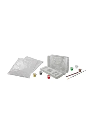 3D Gießform, 2D Gießform, 2x Gips (200g), Pinsel, Farbpalette, Feile, Acrylfarben, Anleitung