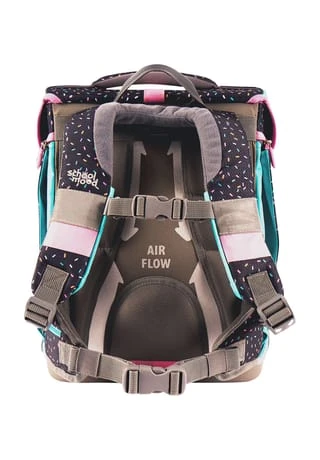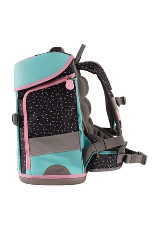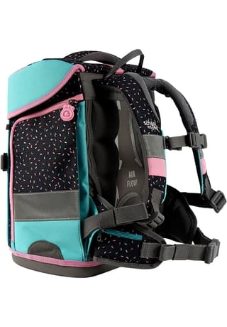 dank integrierter Halterung kann Sportbeutel am Schulranzen befestigt werden