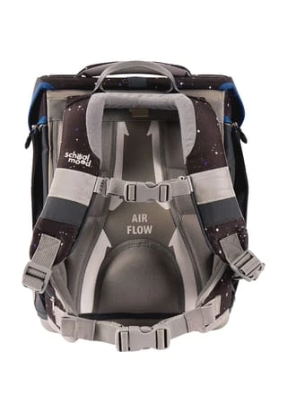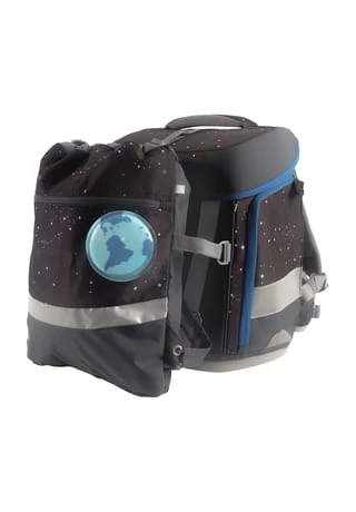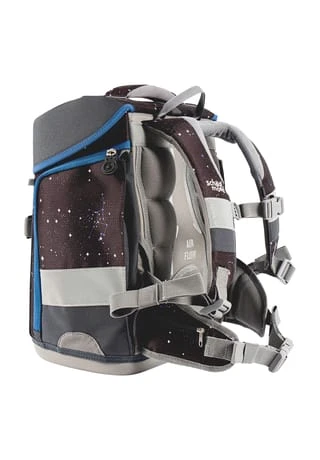 7-teiliges Schulranzen-Set von School-Mood, bestehend aus Schulranzen, Turnbeutel, Schüleretui (21-tlg.), Schlamperrolle, Brustbeutel, Brotdose und 3 Patchies im Astronauten- und Planeten-Stil. Der klassische Schulranzen der Hero Air+ Serie ist robust, wasserabwesend, leicht zu reinigen und lässt keine Wünsche offen.
