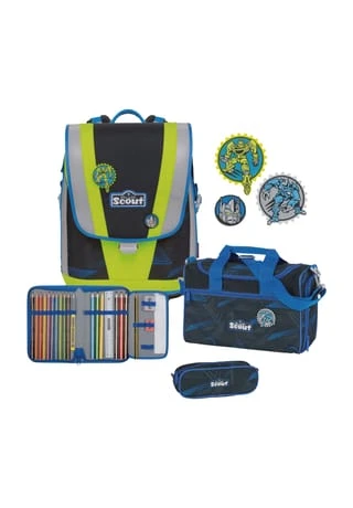 Der 5-teilige Schulranzen-Set von Scout, beinhaltet einen Schulranzen mit 6 Funny Snaps, eine Sporttasche mit Nassfach,ein Schlamper Etui und ein 23-teiliges Etui. Für einen kraftsparenden Tragekomfort und einen optimales Sitz des Schulterbereichs in jeder Wachstumsphase gibt es ein höhenverstellbares Tragegurtsystem mit integriertem Hüftgurt. Dieses Tragegurtsystem passt sich dem wachsenden Kinderrücken sehr gut an. Schulranzen Gewicht: ca. 1.100g